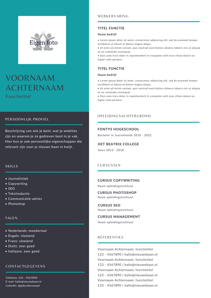 Voor slecht € 15 kun je een professioneel cv laten maken. Vul hieronder je persoonlijke gegevens in, beschrijf kort de inhoudelijke punten die in je cv moeten staan, kies je template en kleurvoorkeur en je ontvangt binnen 48 uur na betaling een gepersonaliseerde cv!
